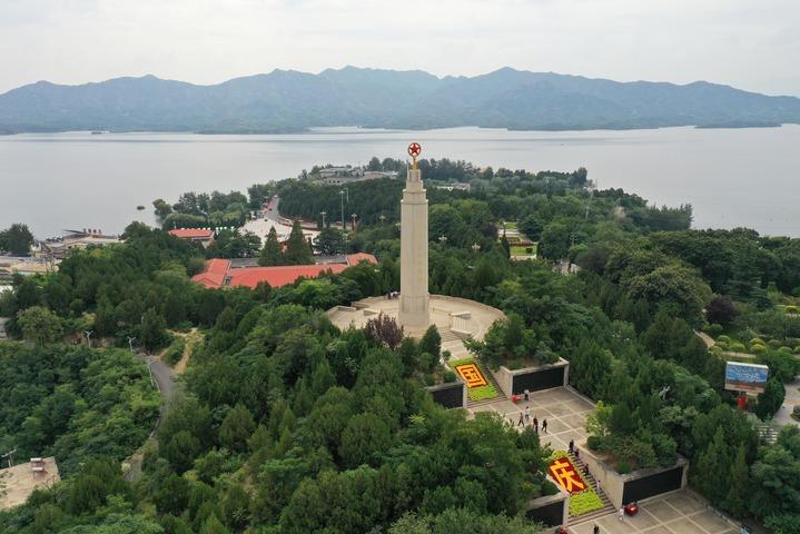 這是河北省石家莊市平山縣西柏坡紀念塔(9月23日攝,無人機照片)。新華社記者 牟宇 攝