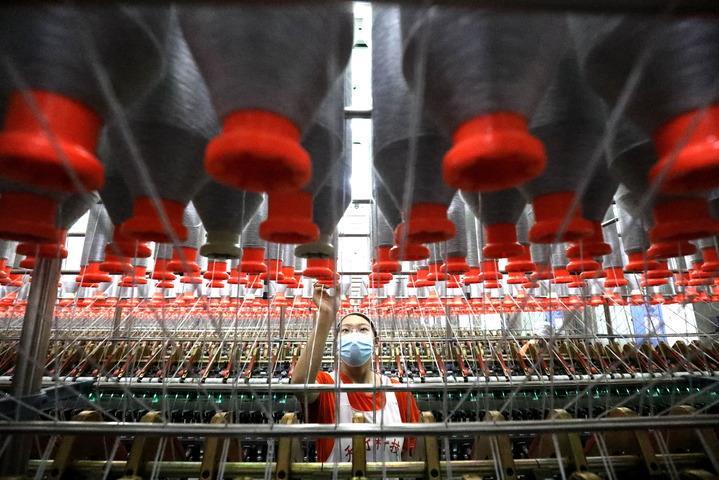 2月16日,工人在河北省石家莊市藁城經濟開發區一家化纖企業生產車間內工作。新華社記者 駱學峰 攝