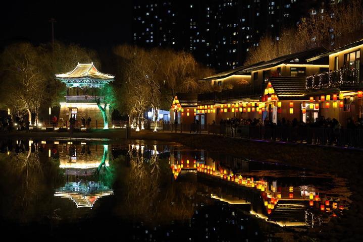 這是2月1日拍攝的河北省石家莊市欒城區古欒水鎮夜景。新華社記者 駱學峰 攝