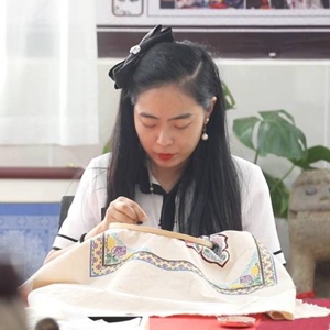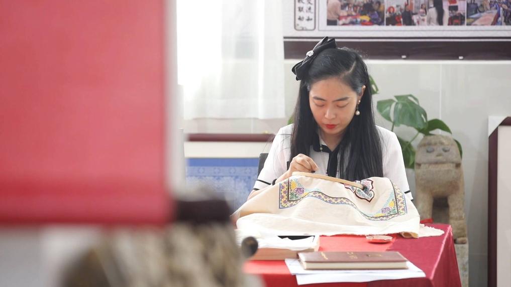 作為城固架花技藝傳承人,丁茹創辦了占地1400平方米的城固架花非遺工坊,這里集傳承、文創、銷售為一體。通過宣傳推廣,非遺工坊的城固架花刺繡作品不僅銷往全國各地,還賣到了新加坡、英國等地,代代相傳的“老手藝”已成為群眾增收、賦能鄉村振興的“金鑰匙”。