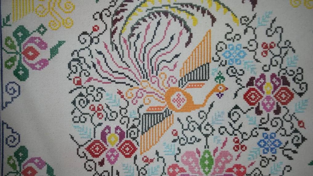 流行于陜西省漢中市城固縣一帶的城固架花,是陜西省非物質文化遺產項目。城固架花以白土布作底,以十字陣法為基礎,以花包花、疊加、對稱等獨特的表現手法,用針將五彩絲線繡在底布經線和緯線交織的網格上,形成色彩絢麗、立體感強的圖案。