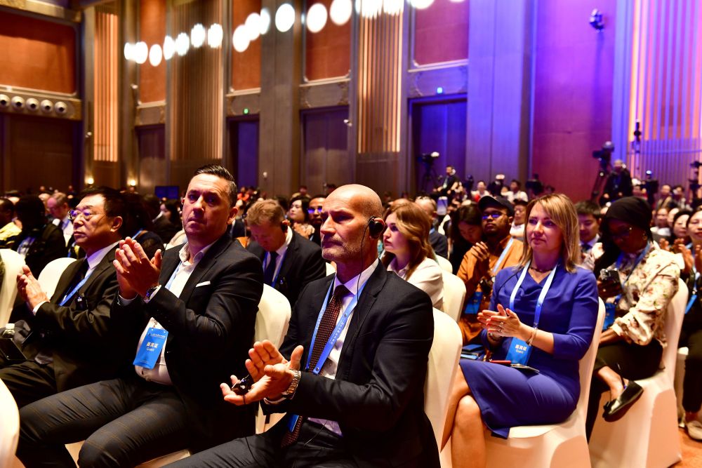 2023年9月27日,吉爾吉斯斯坦副總理埃迪爾·拜薩洛夫在第九屆尼山世界文明論壇開幕式上致辭。新華社記者 郭緒雷 攝