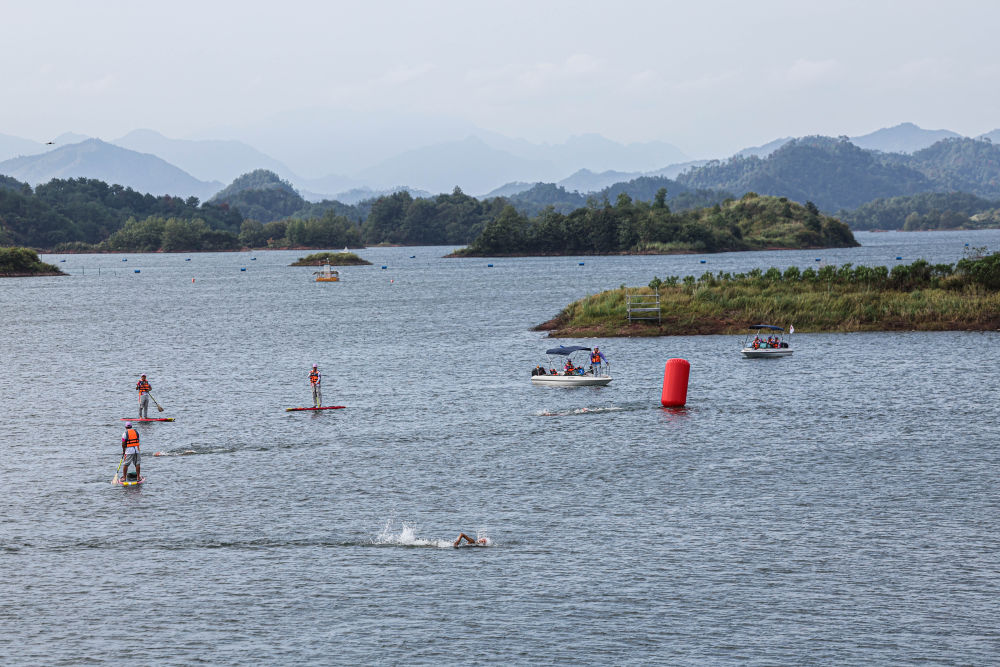 杭州主城區西南方約200公里,淳安縣千島湖秀水畔的界首鄉,水域廣闊、港灣曲折,沿線騎行、徒步的游客絡繹不絕。杭州亞運會自行車、鐵人三項等比賽在這里如火如荼地展開。