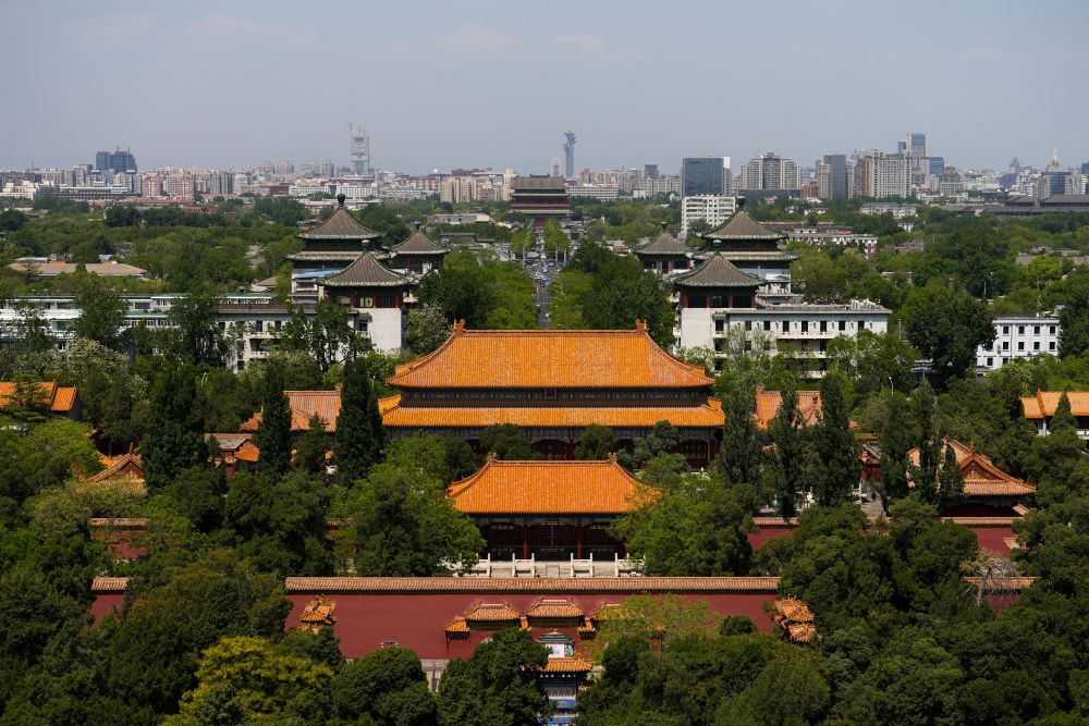 在景山公園上拍攝的北京中軸線風光(4月29日攝)。新華社記者 鞠煥宗 攝