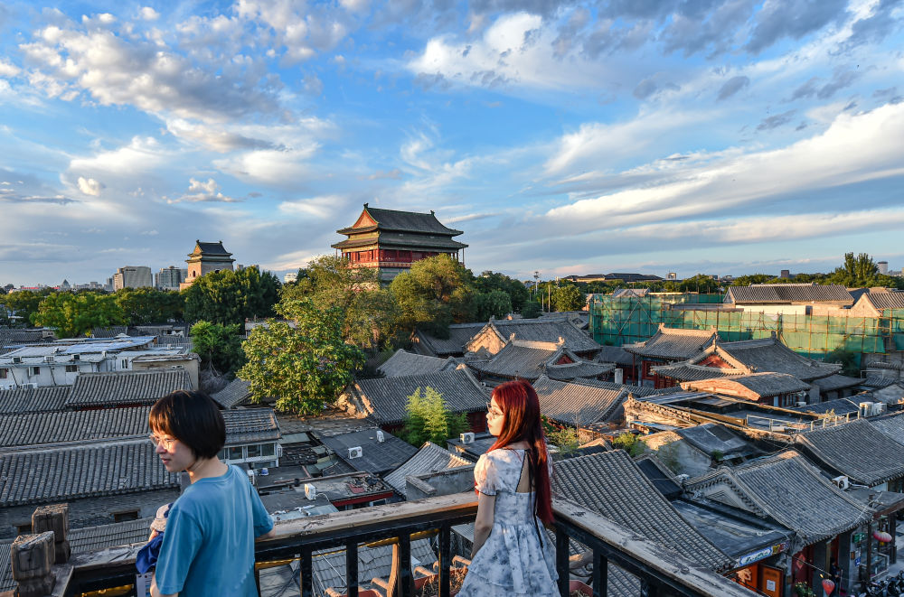 人們在北京什剎海附近咖啡廳露臺欣賞風景(6月10日攝)。新華社記者 陳鐘昊 攝