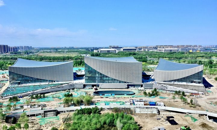 建設中的北京城市副中心劇院(4月30日攝,無人機照片)。新華社發(北京建工集團提供)