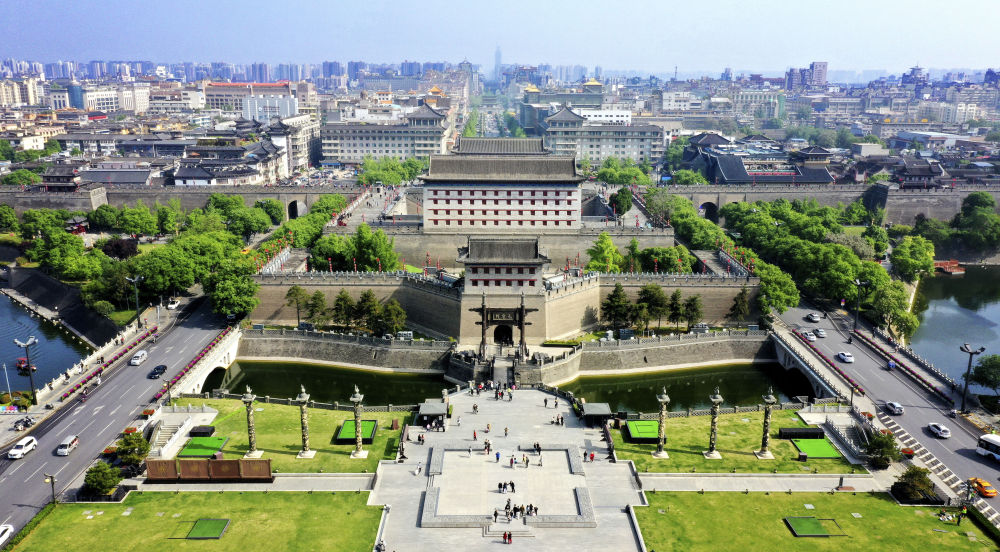 西安城墻永寧門(2023年4月25日攝,無人機照片)。新華社記者 劉瀟 攝