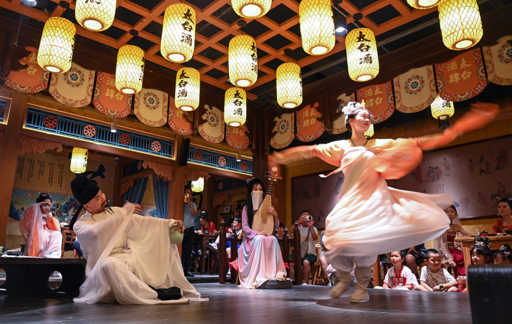西安大唐不夜城,從寫滿詩詞的燈飾下穿行,與唐裝“仕女”擦肩而過,“李白”正于燈火闌珊處邀游客吟詩作對。走進“長安十二時辰”主題街區,恍若夢回大唐,數十臺唐文化主題演藝一步一景。歷史文化融入主題演藝,文旅消費活力激增。