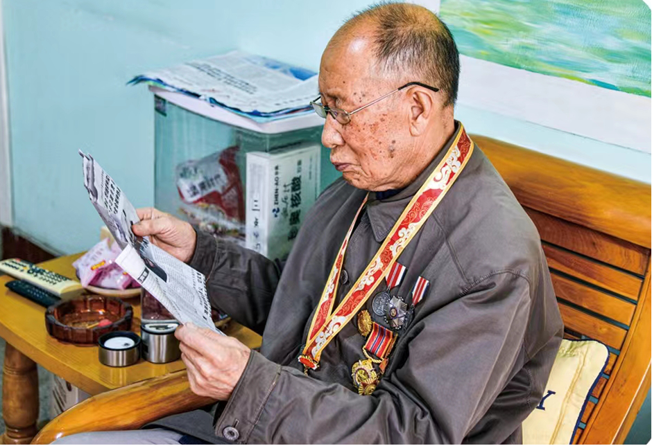 1951年秋,因為一場突發傳染病,發報班許多戰士都病倒了。關鍵時刻,爺爺一個人頂替其他戰士連續工作十多天,保證了志愿軍司令部的正常通聯。1952年10月,上甘嶺戰役打響,40多天里,爺爺作為發報班班長帶領18名報務員在極其艱苦的環境里工作,保證將每一封電報及時傳達到。戰役結束后,部隊開展紅旗班組競賽活動,爺爺所帶班組被評為紅旗班,爺爺也榮立二等功,被授予朝鮮民主主義人民共和國三級國旗勛章。