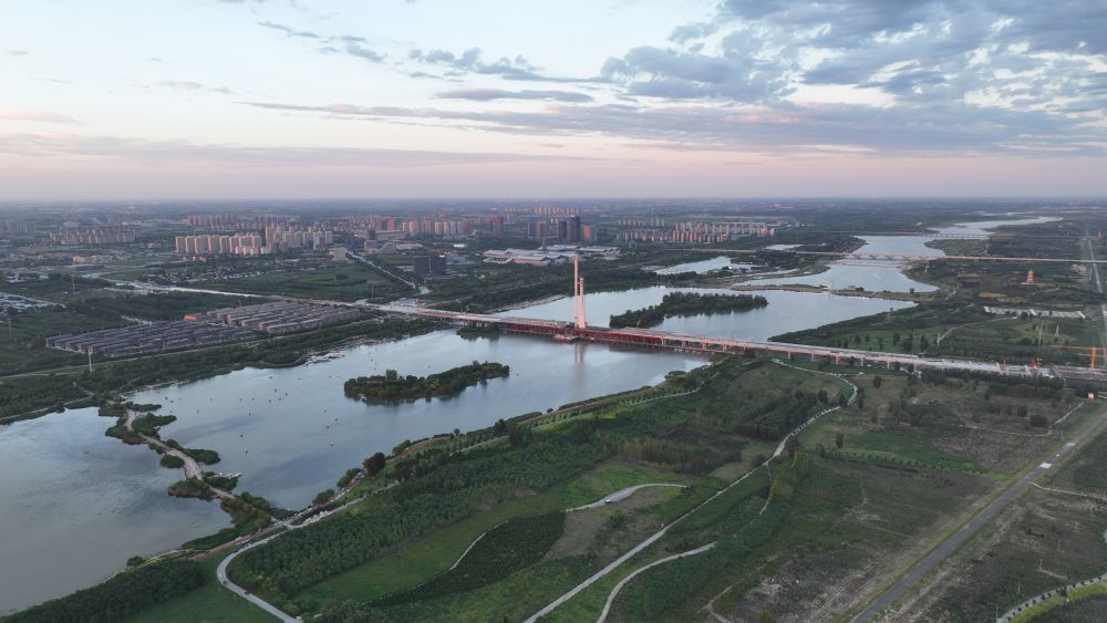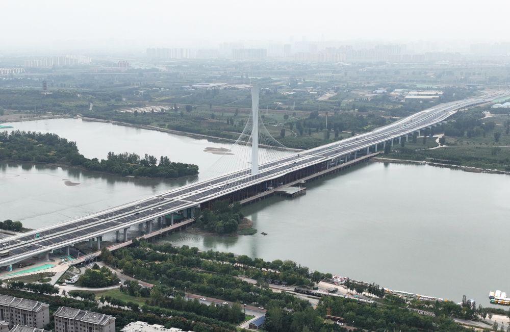 石家莊滹沱河特大橋(2023年9月28日攝,無人機照片)。新華社記者 朱旭東 攝