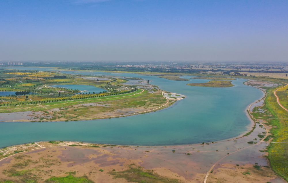 滹沱河生態修復工程石家莊藁城段廉州湖(2023年6月1日攝,無人機照片)。新華社記者 朱旭東 攝