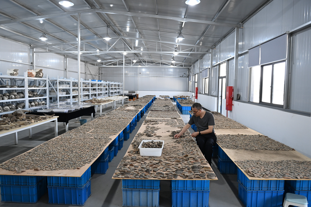 2023年11月3日,考古人員在整理井頭山遺址出土的文物。新華社記者 黃宗治 攝