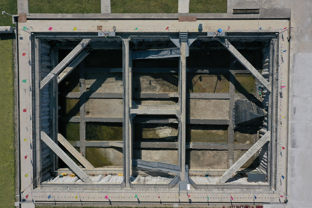 2023年11月3日在余姚市拍攝的河姆渡遺址考古發掘現場展示區(無人機照片)。新華社記者 黃宗治 攝
