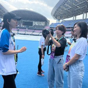 仍有許多體育記者忙碌在一線