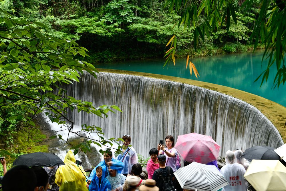 游客在貴州省荔波縣小七孔景區游覽(2022年8月6日攝)。新華社記者 楊文斌 攝