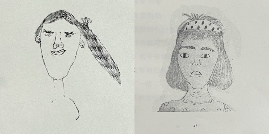 一年后,姐妹倆分別為對方畫了一幅素描,印在大元社詩集上?!敖忝脙蓚€都有些藝術天賦,姐姐琴彈得好,妹妹畫畫、寫詩。我們嘗試通過她們各自的藝術創作讓兩人溝通,互相欣賞、彼此尊重?!敝苎嗾f。