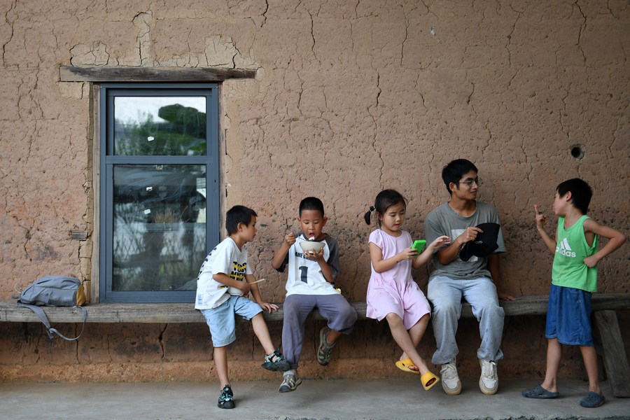 2022年8月20日,孩子們在大元社“鄉村藝術節”演出。新華社記者 陳振海 攝