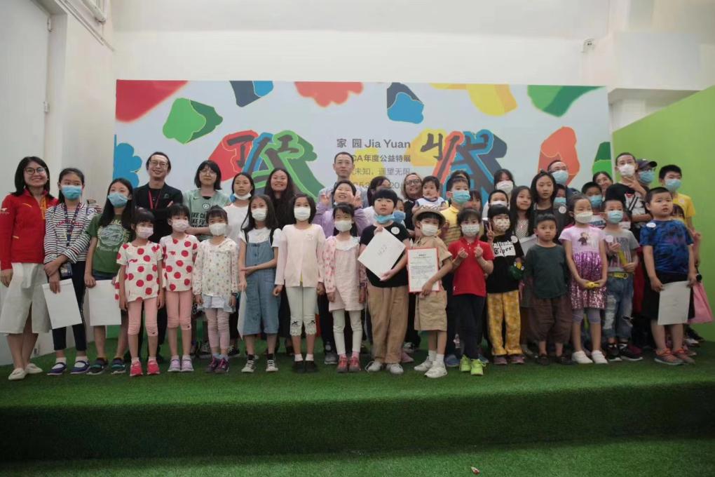 上圖:2020年6月1日,大元社的孩子們在北京參加尤倫斯“家園”公益展。下圖:2019年12月21日,大元社孩子的作品《山火》參加北京尤倫斯“青少年藝術節作品展”。(受訪者供圖)
