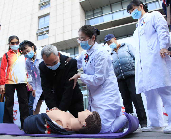 部分醫院開展義診活動,指導市民進行心肺復蘇演練。新華社發