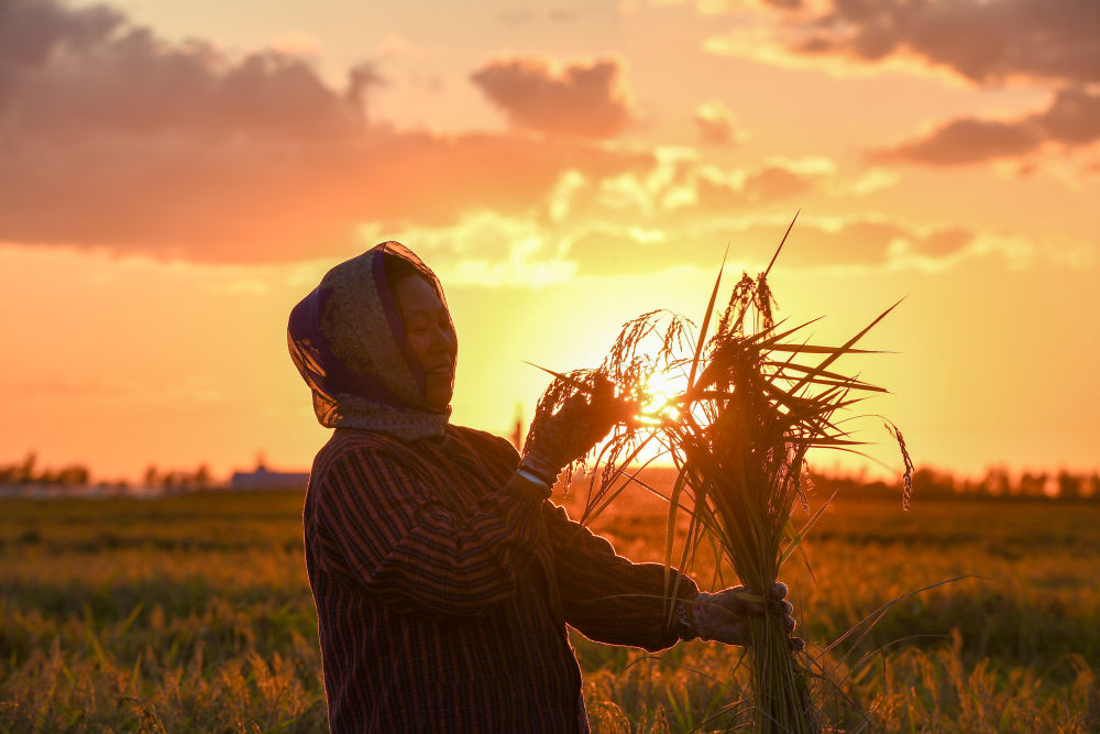 2023年9月12日,在吉林省吉林市永吉縣萬昌鎮花家村,農民手持收獲的水稻。新華社記者 張楠 攝