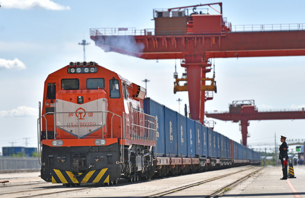 2023年9月19日,X8103次列車從中歐班列(沈陽)集結中心出發駛向歐洲。新華社記者 楊青 攝