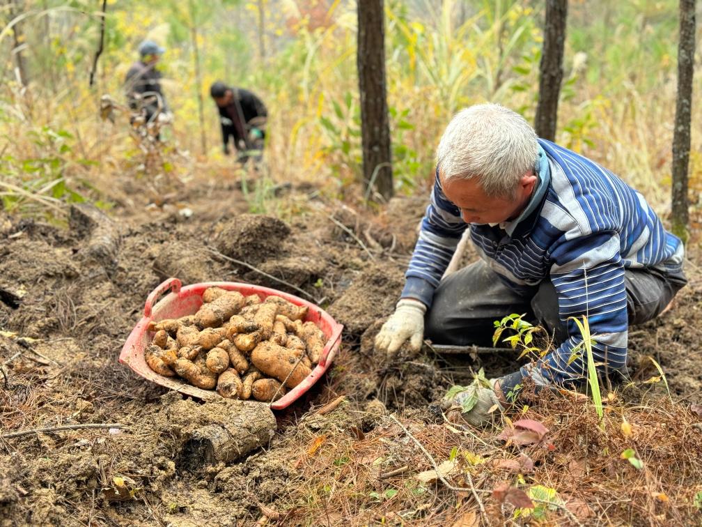 重慶市城口縣周溪鄉村民正在采挖天麻。新華社記者趙佳樂 攝