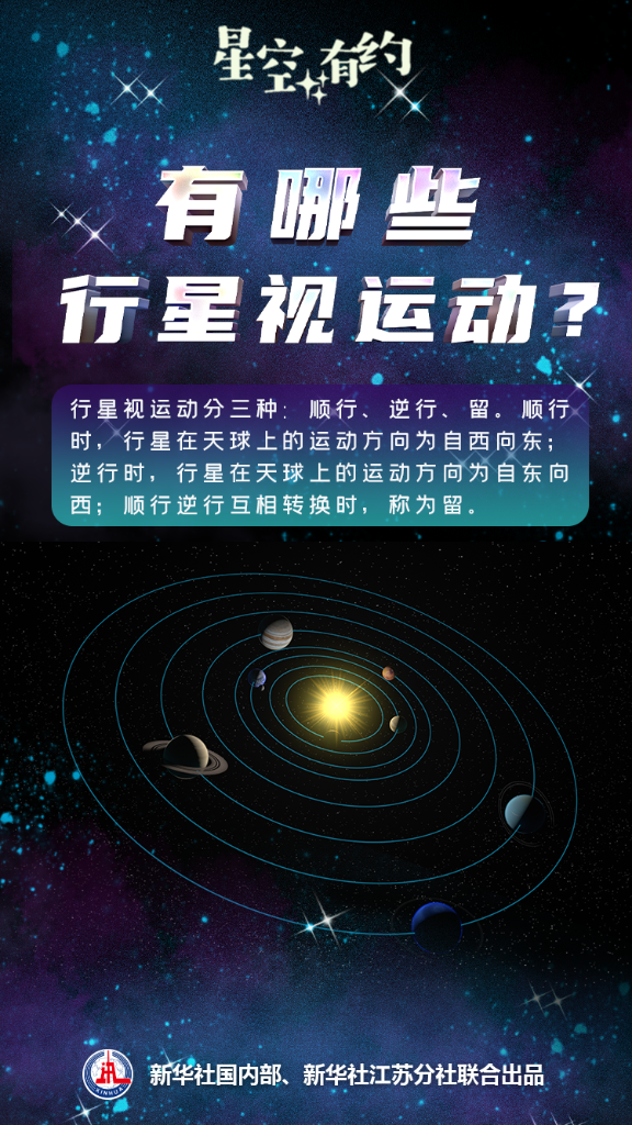 “地球和其他太陽系行星沿著各自軌道,以不同速度繞太陽公轉。但在地球上看,這些行星在天球上的運動時而前進、時而后退?!敝袊茖W院紫金山天文臺科普主管王科超解釋說,以海王星為例,在地球上以恒星為背景觀察,會發現大部分時間里,海王星緩慢地自西向東運動,這被稱為順行。但隨著地球和海王星在各自軌道上位置的變化,每隔一段時間,海王星相對恒星背景的運動方向會變為自東向西,像是在“后退”,這被稱為逆行。逆行與順行互相轉換時,海王星相對恒星背景存在一個短暫不動的時刻,稱為留。