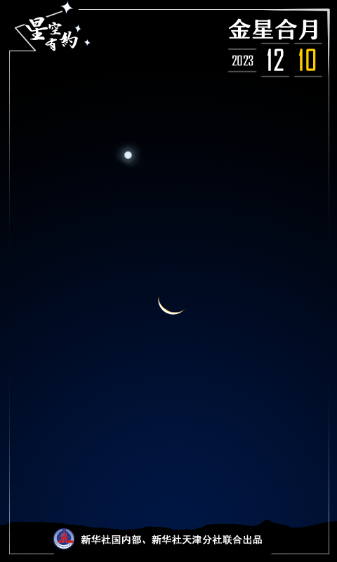 新華社天津12月8日電(記者周潤?。╄裁髁恋慕鹦桥c細細窄窄的月亮每每“相遇”時,總能給天空增添一抹亮色。天文科普專家介紹,今年最后一次金星合月將于12月10日上演,感興趣的公眾可于當日清晨進行觀賞,星很亮,月很柔,二者近距離相伴別有一番韻味。