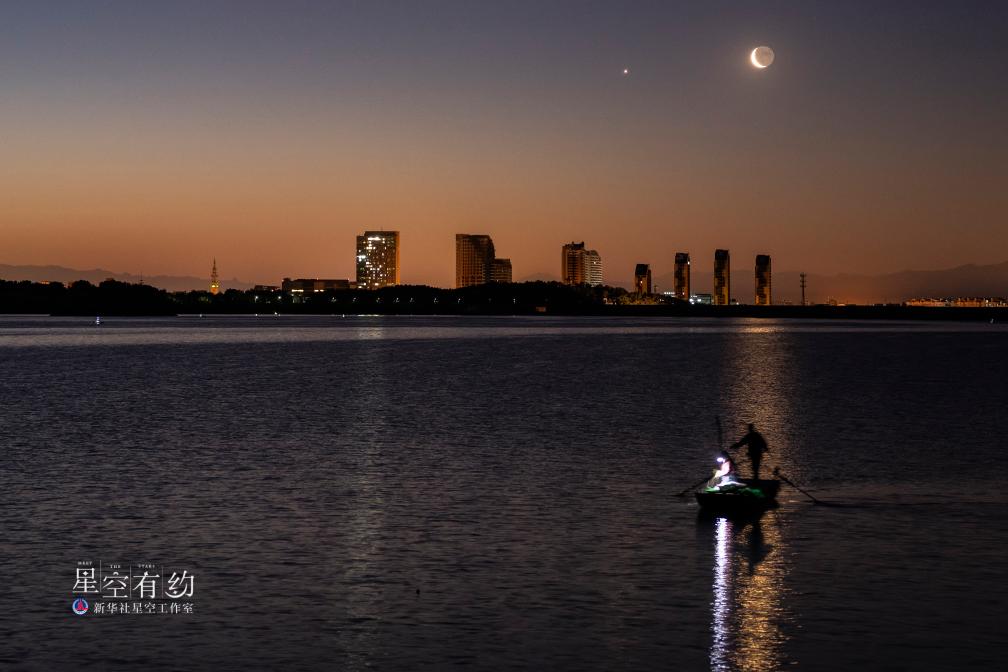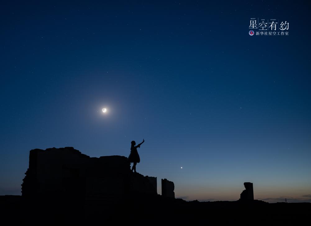 重慶星空愛好者周揚宋丹2021年8月12日在青海冷湖拍攝的金星伴月。(星聯CSVA供圖)