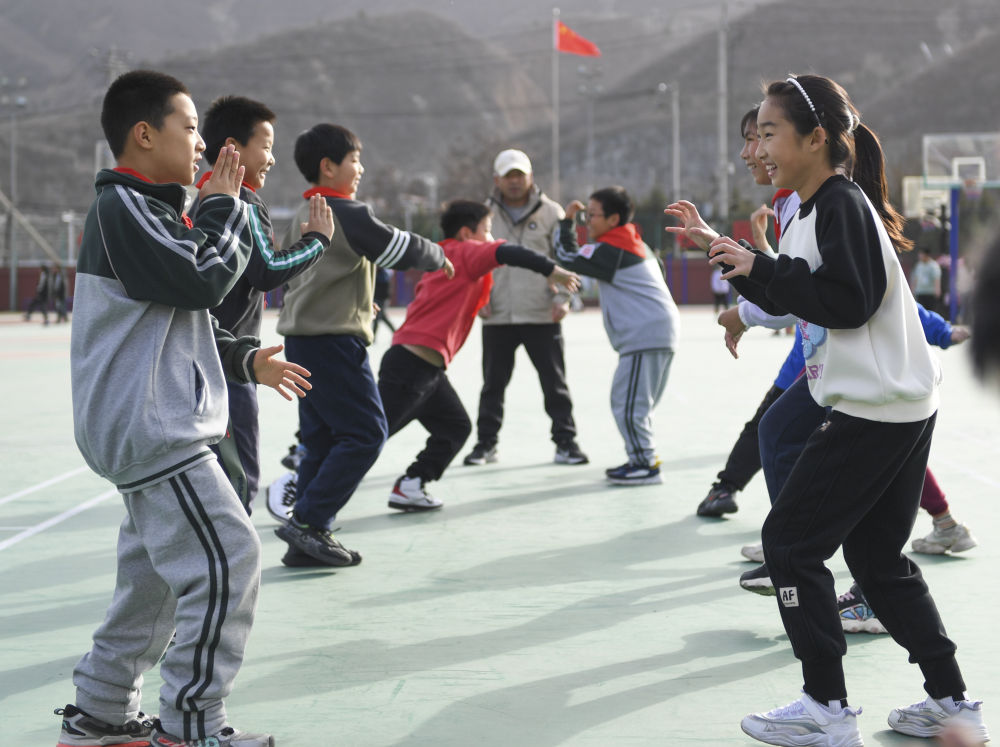 2023年12月6日,在北京門頭溝妙峰山民族學校,學生們在上體育課。新華社記者 鞠煥宗 攝