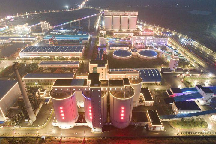 夜幕時分的曹家灘智慧礦山(2021年10月12日攝)。曹家灘智慧礦山通過建設智慧化礦山系統,使礦井生產流程實現智能化,提高了開采效率,降低了運行成本。新華社記者 邵瑞 攝