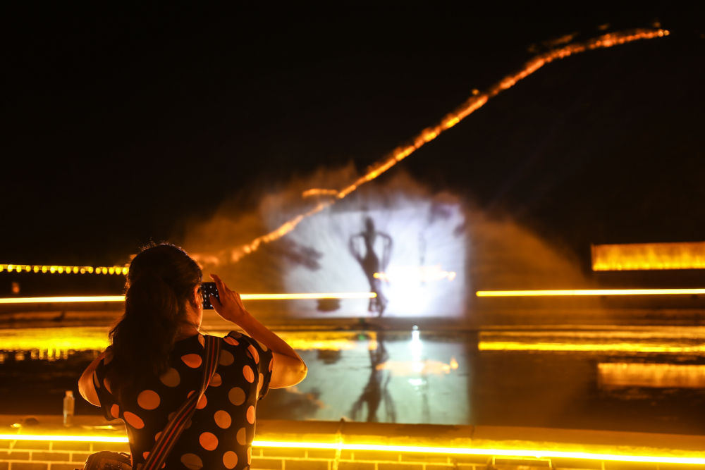 2023年6月30日,游客在遼寧省葫蘆島市綏中縣九門口長城景區觀看水幕電影。新華社記者 潘昱龍 攝