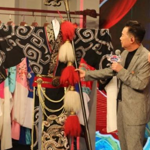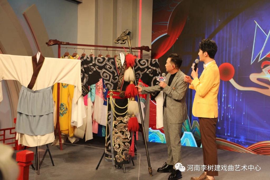 李樹建(左)在直播間介紹戲曲服飾。(來自河南李樹建戲曲藝術中心)