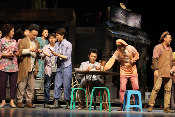 涂松巖(坐)主演話劇《人間煙火》劇照(新華社發)