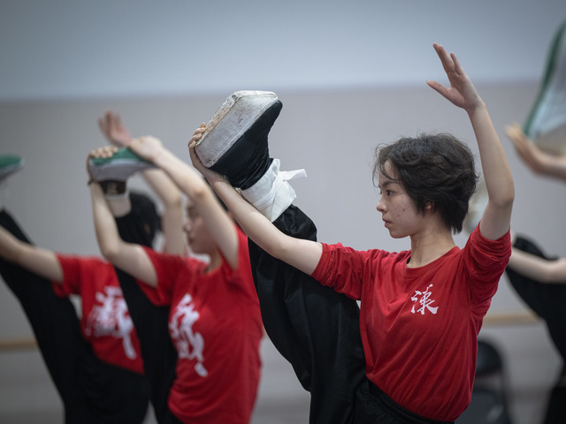 2023年10月,青年漢劇演員在湖北省戲曲藝術劇院練功。(新華社發)