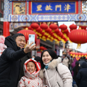 2023年1月26日,農歷大年初五,游客在天津古文化街留影。新華社記者 趙子碩 攝