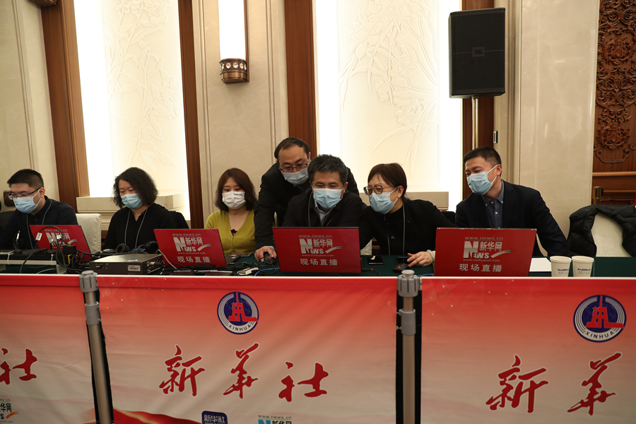 新華網記者在現場做直播準備工作