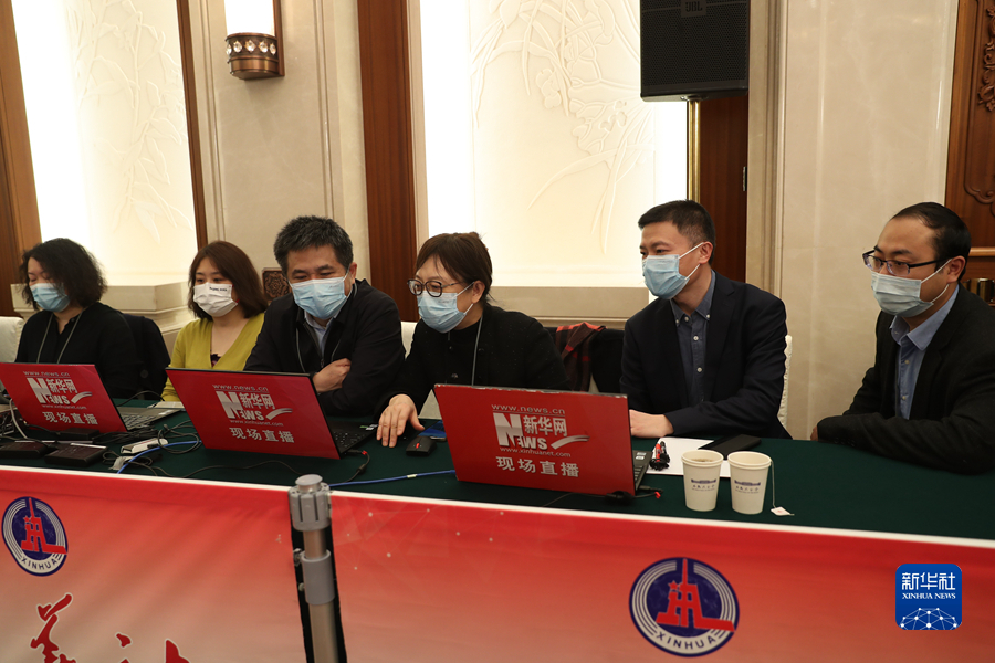 3月3日,全國政協十四屆一次會議新聞發布會在北京舉行,大會新聞發言人郭衛民向中外媒體介紹本次大會有關情況并回答記者提問。圖為本網記者在現場做直播準備工作。新華網記者 焦鵬 攝