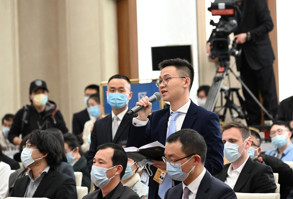 3月3日,全國政協十四屆一次會議新聞發布會在北京人民大會堂舉行,大會新聞發言人郭衛民向中外媒體介紹本次大會有關情況并回答記者提問。這是新華社記者在發布會上提問。