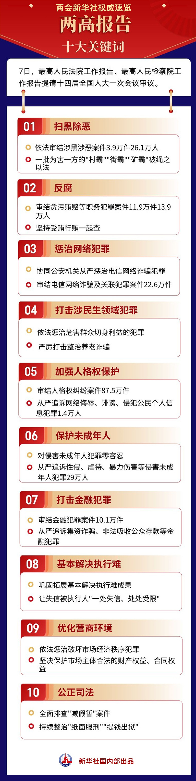 新華社北京3月7日電 題:十大關鍵詞解讀兩高報告