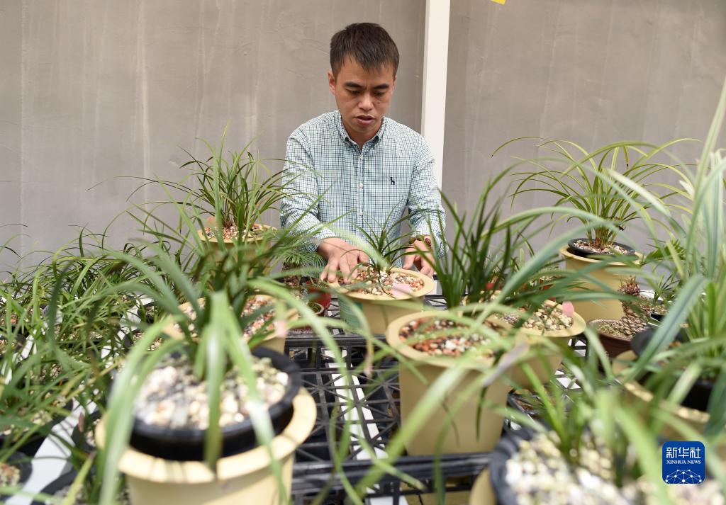 浙江省紹興市柯橋區漓渚鎮棠棣村的村民在照料蘭花(2018年4月25日攝)。新華社記者 韓傳號 攝