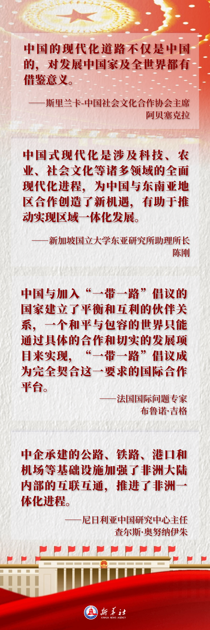 中共二十大擘畫出全面建設社會主義現代化國家、以中國式現代化全面推進中華民族偉大復興的宏偉藍圖。在跟蹤關注中國兩會進程的海外人士看來,中國式現代化不僅為中國同世界各國合作提供新的機遇,也破解了人類社會發展的諸多難題,創造了人類文明新形態,帶來重要啟示。
