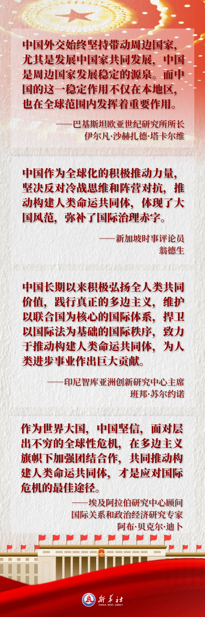 “中國堅持和平、平等、友好的外交政策,體現出‘讓我們共同發展’的價值取向?!币晾室了固m共和國通訊社資深編輯、中國問題專家穆罕默德·禮薩·馬納菲感慨,“中國作為世界大國,正努力推動世界實現和平、安全與穩定,是一個可靠的和平支持者”。