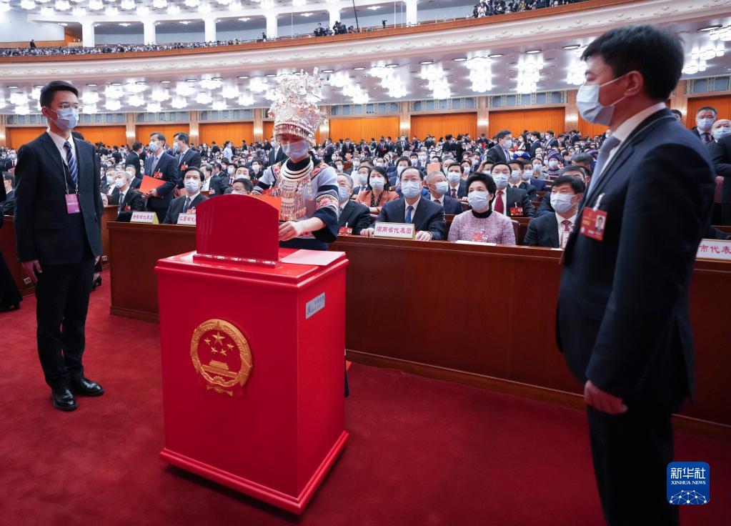 3月10日,十四屆全國人大一次會議在北京人民大會堂舉行第三次全體會議。這是代表在投票。