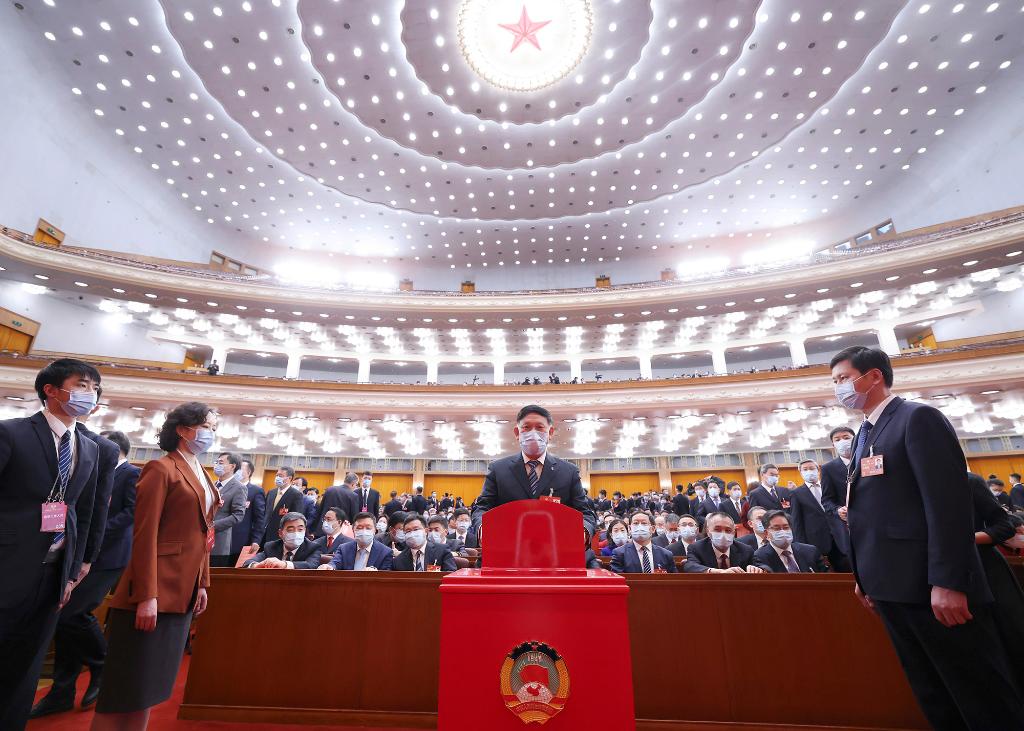 3月10日,全國政協十四屆一次會議在北京人民大會堂舉行第三次全體會議。這是委員在投票。