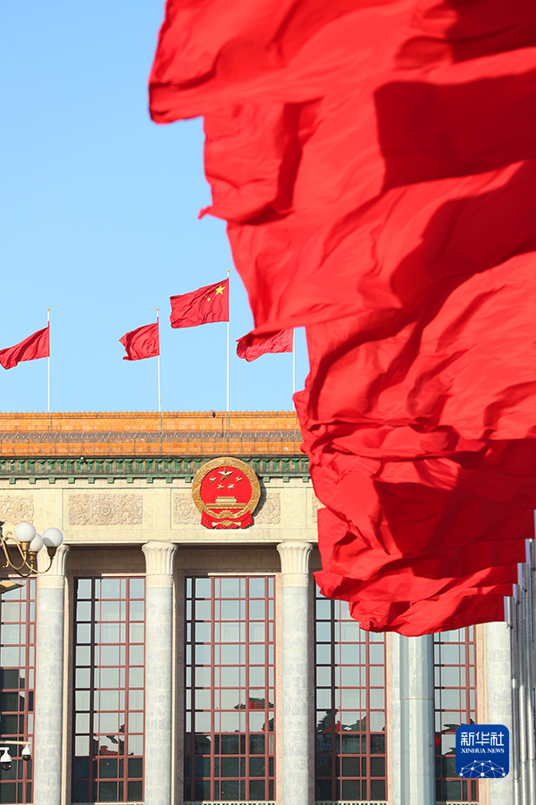 3月12日上午9時,十四屆全國人大一次會議在人民大會堂舉行第五次全體會議。圖為人民大會堂外景。 新華網記者 焦鵬 攝