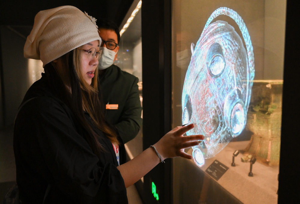 2023年9月15日,觀眾在位于北京奧林匹克公園核心區的中國考古博物館內體驗互動屏幕。新華社記者 李賀 攝