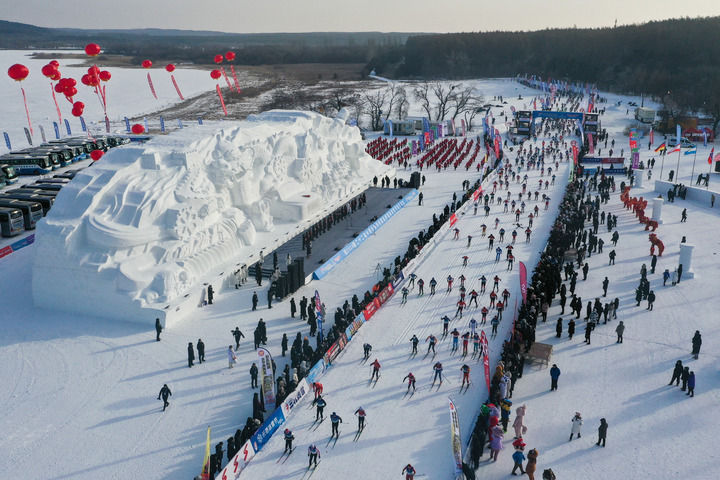 這是2024年1月4日在吉林省長春市凈月潭國家森林公園舉行的第22屆中國長春凈月潭瓦薩國際滑雪節現場。新華社記者 許暢 攝