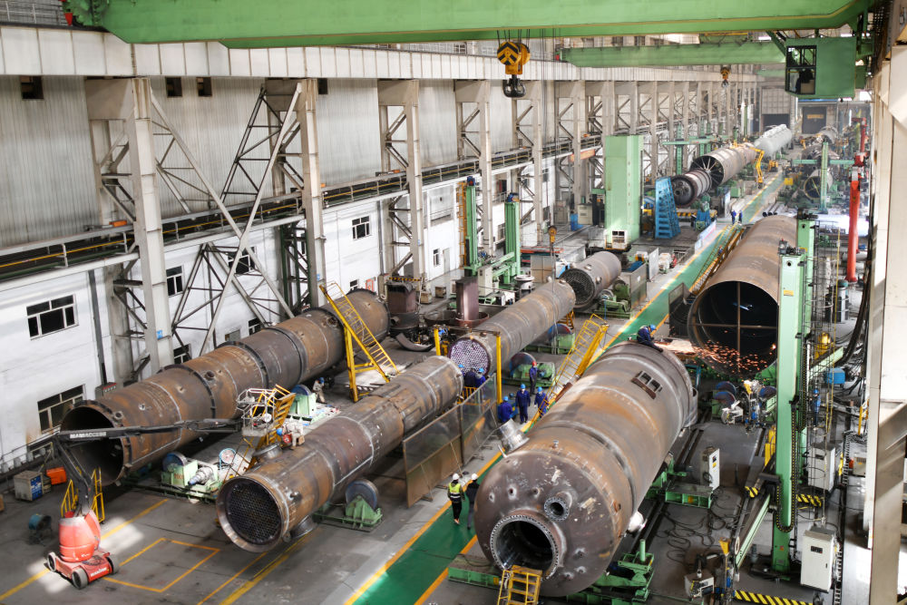 工人在哈電集團哈爾濱鍋爐廠有限責任公司生產車間作業(2023年4月12日攝)。新華社記者 王建威 攝