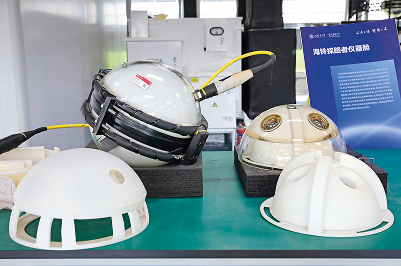 記者在上海交通大學李政道研究所看到,海試的探測裝置以六棱柱結構固定了上中下三個玻璃球。中間的是發光球,以已知波長、頻率發光。上下兩個均為前文中所說的光學探測球,負責測量光到達的時間和強度,通過解碼光在傳播過程中的散射和吸收情況,得出海水的光學性質。